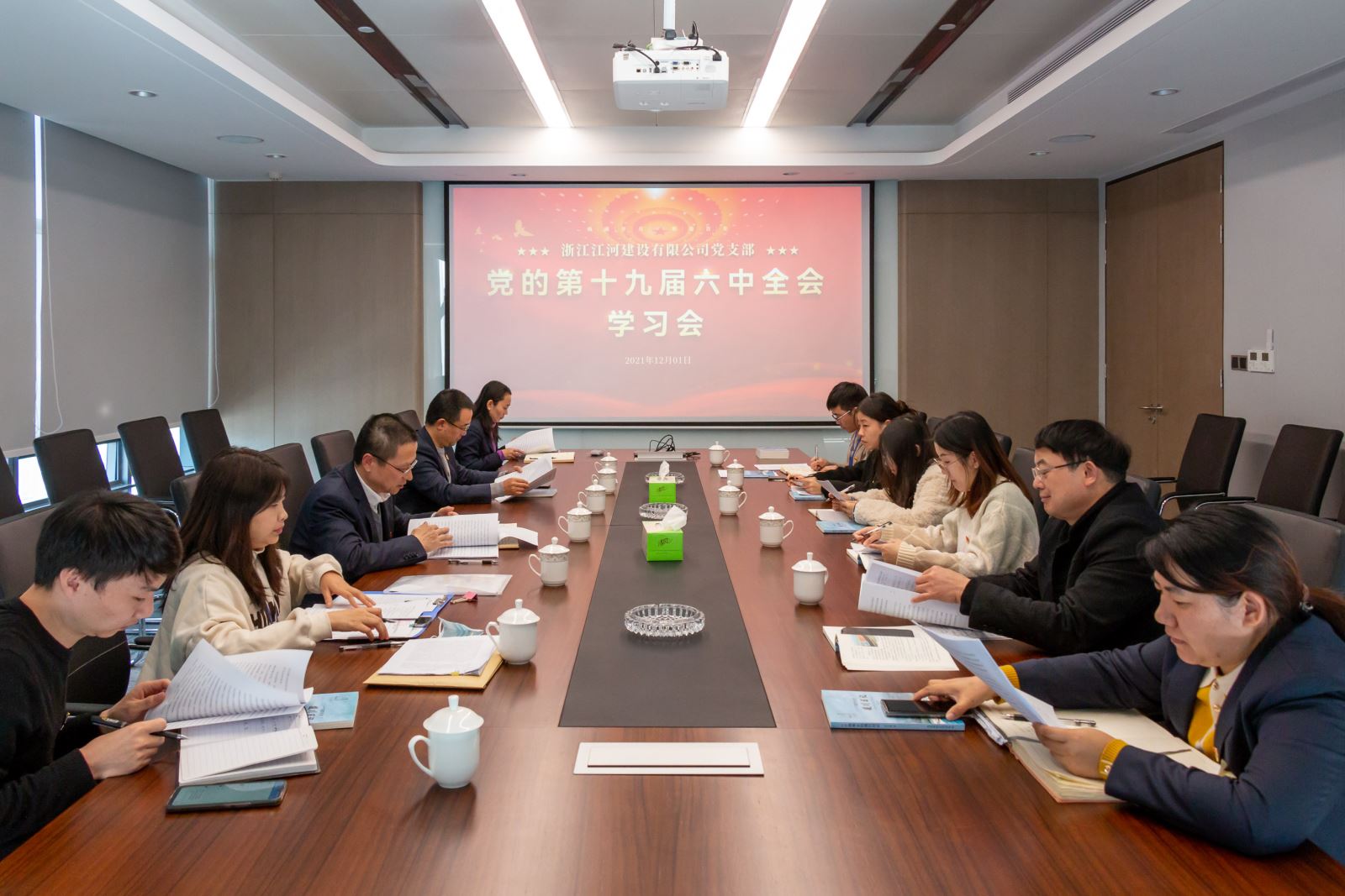 12月1日,在江河建設(shè)杭州總部,浙江江河建設(shè)有限公司黨總支召開(kāi)會(huì)議,學(xué)習(xí)黨的十九屆六中全會(huì)精神。公司黨總支書記、董事長(zhǎng)袁偉忠強(qiáng)調(diào):“公司各級(jí)黨組織以及各黨員要提高政治站位,堅(jiān)持原原本本學(xué),融會(huì)貫通學(xué),聯(lián)系實(shí)際學(xué),把學(xué)習(xí)貫徹六中全會(huì)精神,與學(xué)習(xí)貫徹習(xí)近平總書記“七一”重要講話精神結(jié)合起來(lái),與黨史學(xué)習(xí)教育結(jié)合起來(lái),要把全會(huì)精神納入黨支部“三會(huì)一課”和黨員教育培訓(xùn)內(nèi)容,大力營(yíng)造全公司學(xué)習(xí)貫徹全會(huì)精神的濃厚氛圍,不斷推動(dòng)學(xué)習(xí)往深里走、往心里走、往實(shí)里走,切實(shí)將全體黨員干部的思想統(tǒng)一到全會(huì)精神上來(lái),進(jìn)一步凝聚人心、增強(qiáng)斗志,沖刺四季度、決勝全年度,以扎實(shí)業(yè)績(jī)推動(dòng)公司實(shí)現(xiàn)高質(zhì)量發(fā)展。”