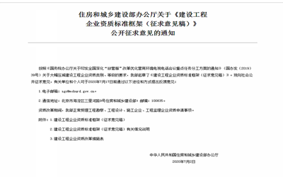 住房和城鄉建設部辦公廳關于《建設工程 企業資質標準框架(征求意見稿)》 公開征求意見的通知